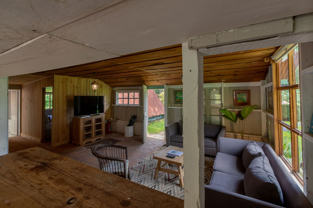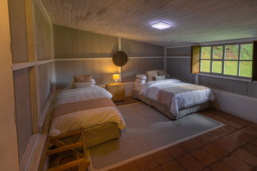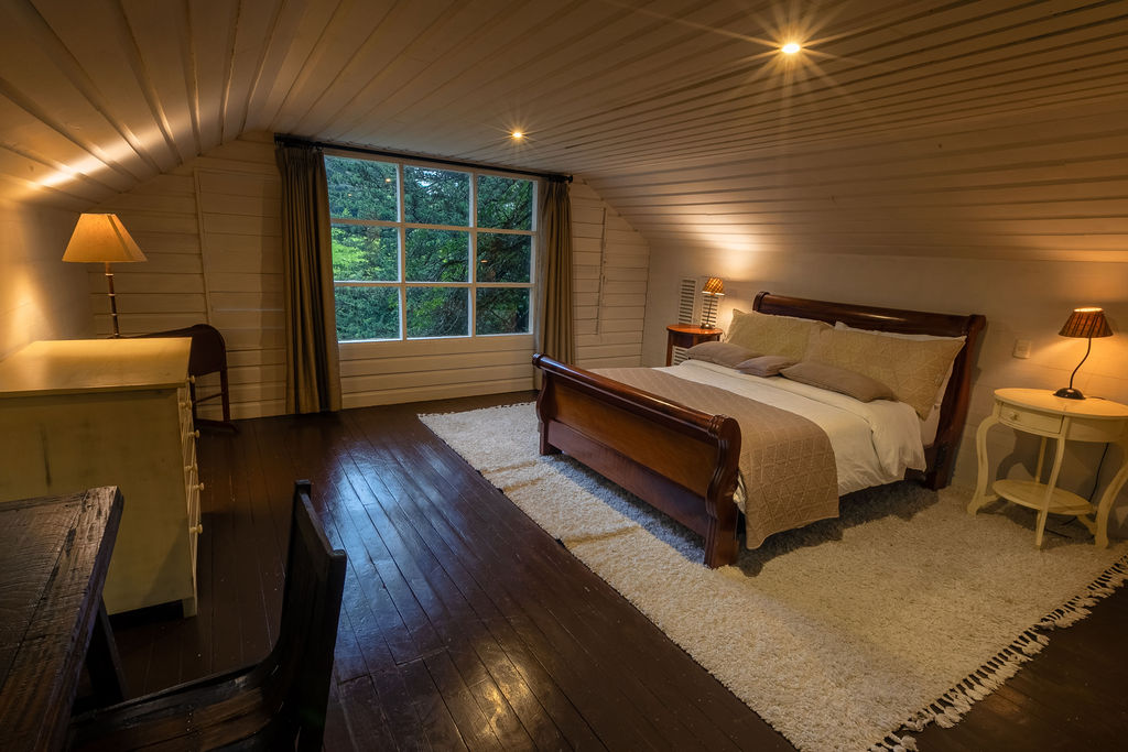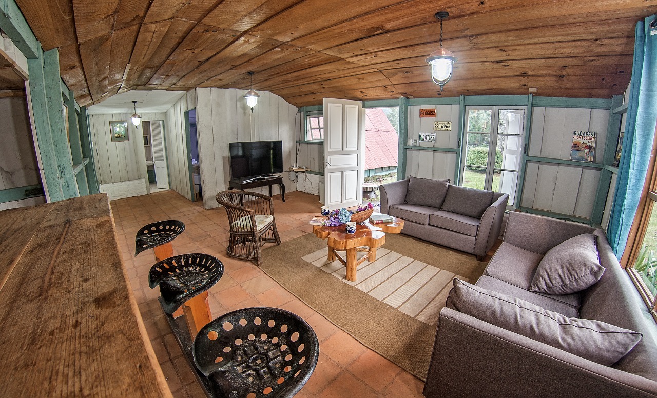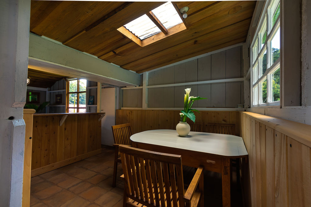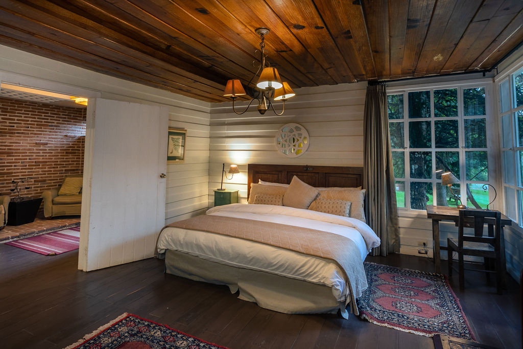 Casa del Bosque   Nuestra pequeña casa para familias o grupos pequeños que disfruten de la naturaleza.  Rodeada de bosque de ciprés, pino y pinabete, y ubicada en la parte alta de la propiedad, posee la mejor vista de toda la propiedad, directa a nuestro Molino y Capilla.   Diseñada para 4 personas.  Posee dos