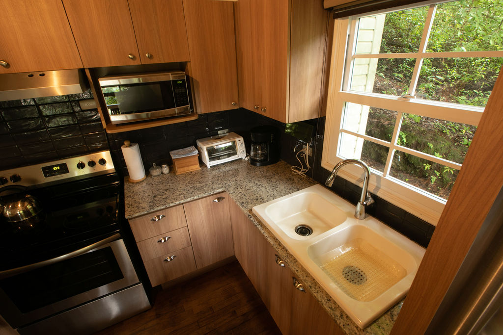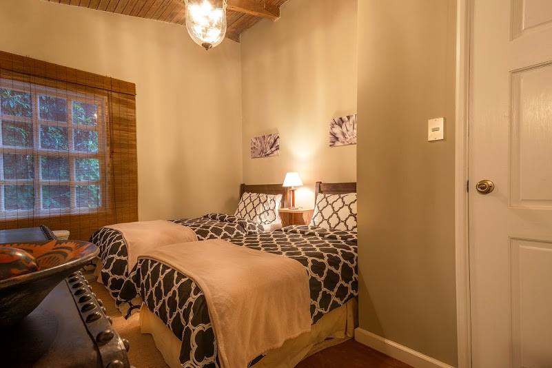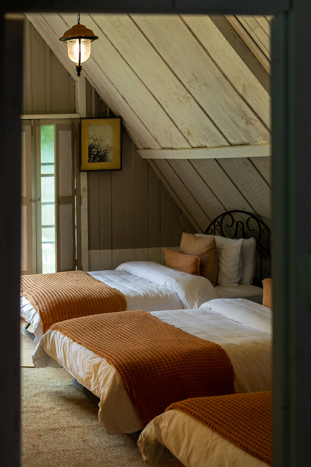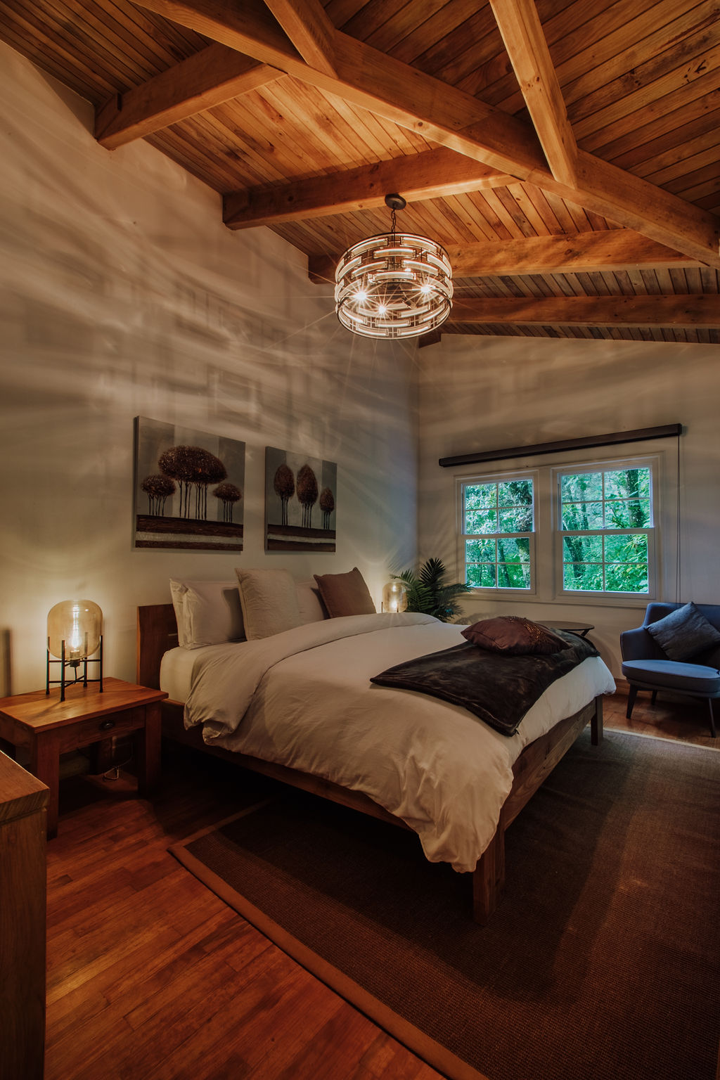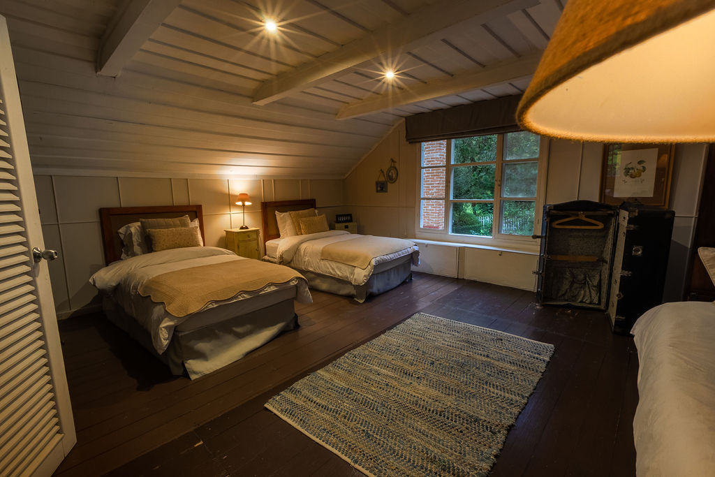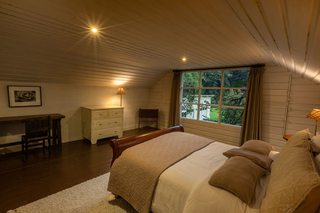 Casa del Bosque   Nuestra pequeña casa para familias o grupos pequeños que disfruten de la naturaleza.  Rodeada de bosque de ciprés, pino y pinabete, y ubicada en la parte alta de la propiedad, posee la mejor vista de toda la propiedad, directa a nuestro Molino y Capilla.   Diseñada para 4 personas.  Posee dos