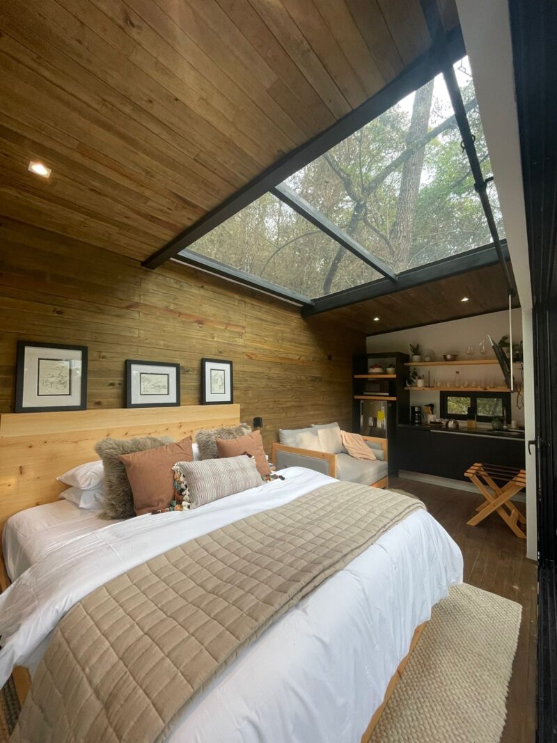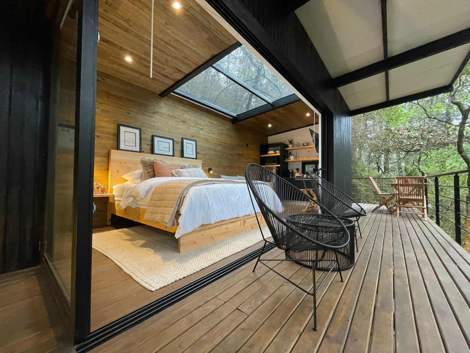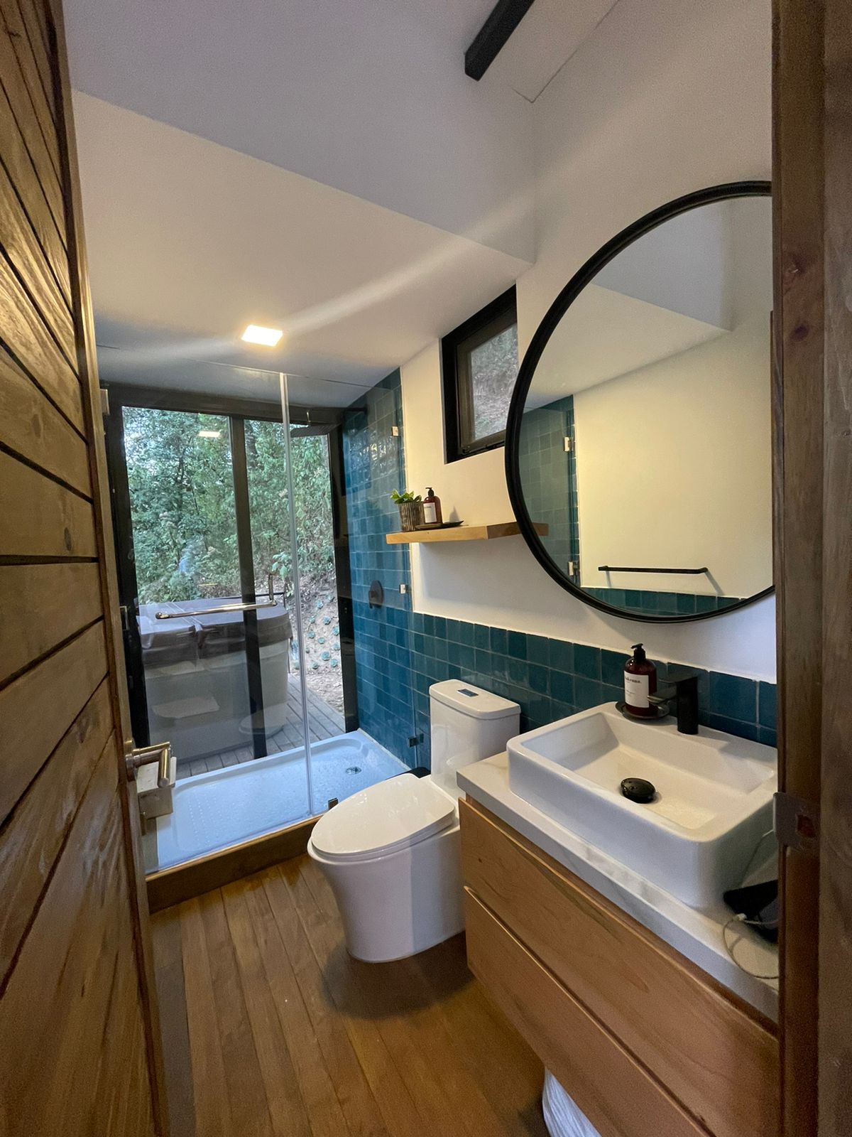 Casa Giralda Cabaña moderna rodeada de árboles de pino y ciprés. Casa Giralda busca establecer una conexión entre lo moderno y la naturaleza que lo rodea. Buscando en los detalles perderte en los sonidos de las aves que revolotean y cantan a su alrededor ideal para compartir una noche en familia. Diseñada para 8 personas,